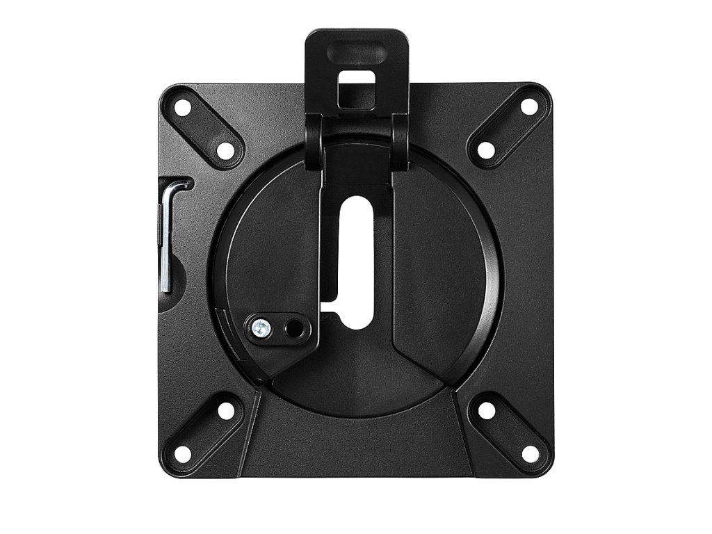 Při montáži větších nebo širších monitorů s nerovnoměrným rozložením hmotnosti se může stát, že se obrazovka vlivem nevyvážení samovolně naklání na jednu stranu. Nová VESA deska umožňuje tento nežádoucí pohyb eliminovat přesným nastavením tuhosti rotace.
