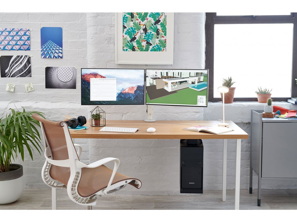 Loop je jednoduché řešení pro úsporu místa. Tělo držáku je upevněno přímo pod stolem, a tak šetří místo na pracovní ploše. Loop chrání počítač před potenciálním poškozením od prachu, nárazů nohou a vysavačů.