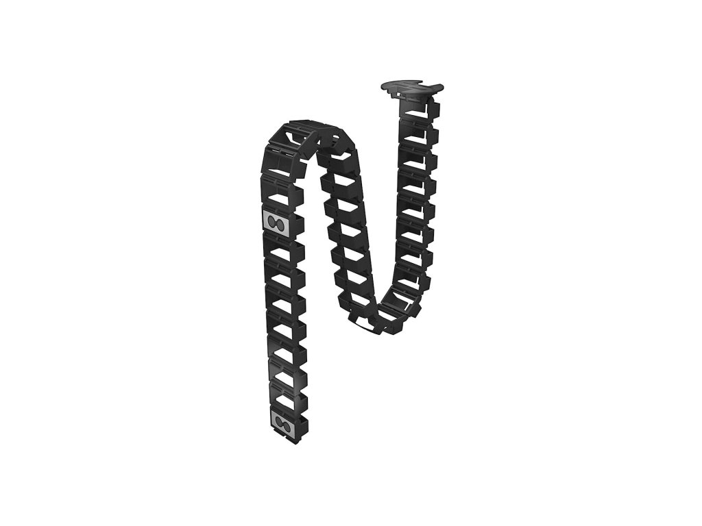 The tables are equipped with both horizontal and vertical cable management - a metal tub with easy access and a magnetic segmented conduit that automatically attaches to one of the table's legs. It's a simple, clean and smart system that helps keep things organized on and under the table. Nothing hangs or hangs anywhere.
