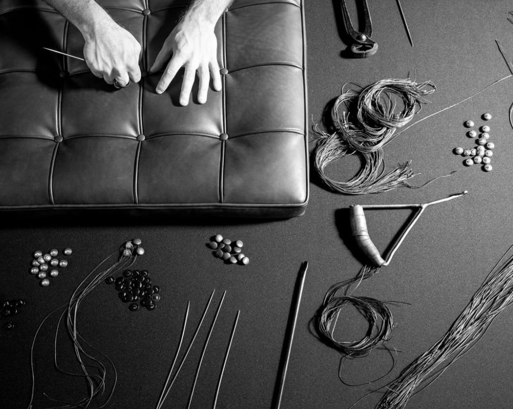 Každé originální křeslo Barcelona je výsledkem pečlivé ruční práce. Kožené čalounění se skládá z jednotlivých dílů, které jsou ručně sešity a vypnuty, zatímco ocelový rám je precizně leštěn do hladkého povrchu.